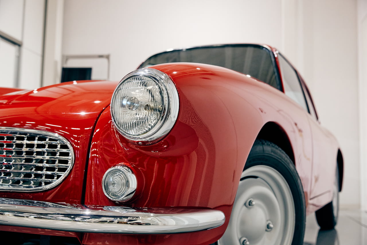 レストアしたミカサツーリングのお気に入りポイントを聞くと、一同が声をそろえたのがデザインです。「現代の自動車ではまず見ない、全体的に丸みを帯びた美しい曲面で、当時の技術者のこだわりや想いを感じます」と野間が語ると、「できるだけ継ぎ目がないように板金1枚物で叩きだししているのがすごいですよね。全体はもちろん、タイヤやライトの形状、ドアのレバーなどパーツもすべておしゃれです」と石橋。