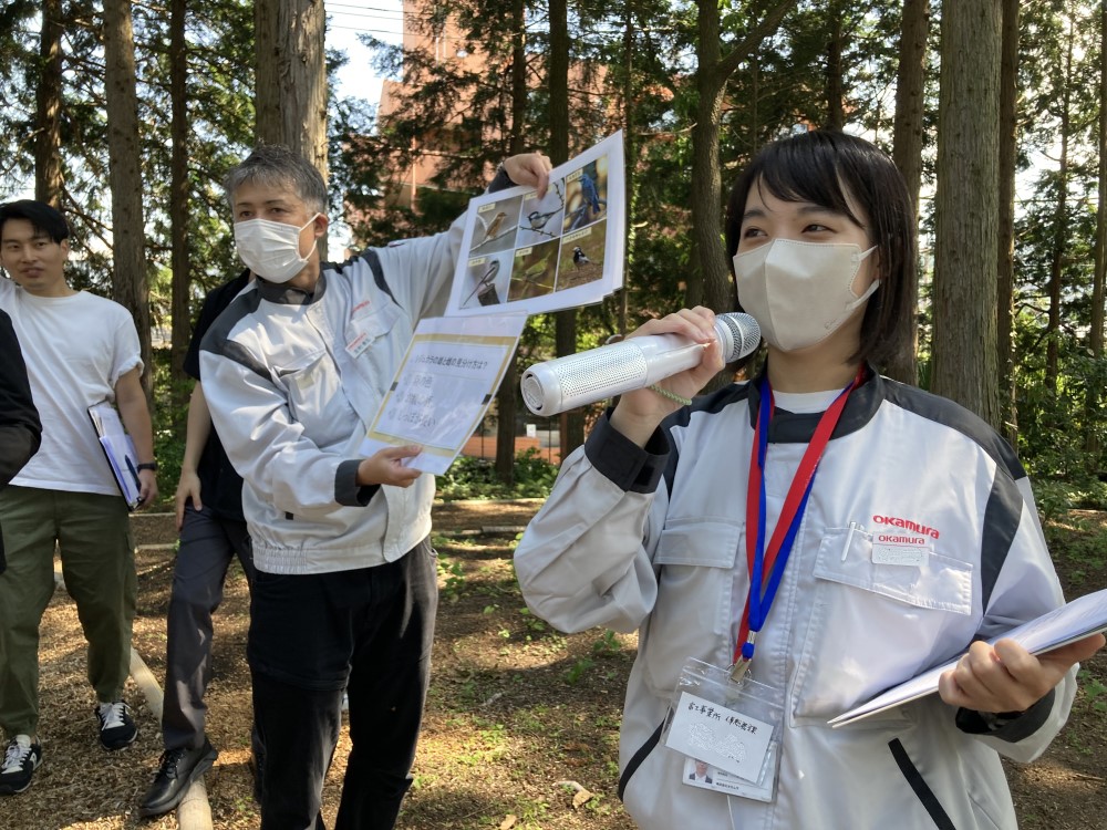 研修では、富士事業所をはじめオカムラ従業員や三島ゆうすい会の方々と交流し、私自身も三島楽寿園では「周辺の工場が操業している平日では水位が低く、土日では水位が高い」ことを知りました。また、研修参加者には富士事業所で製品がどのようにできているか、見学やものづくり体験を通して知ってもらえてよかったと思います。