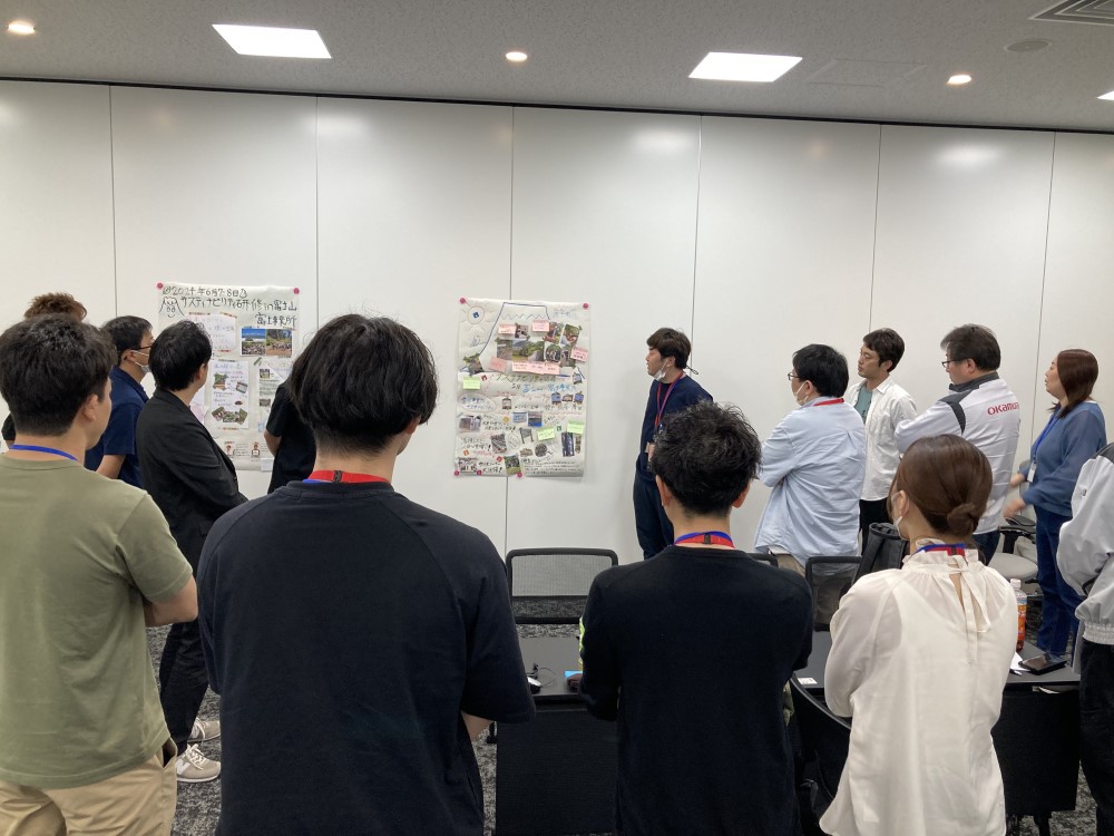 担当業務や所属事業部によってはなかなか訪問機会がない富士事業所現地に足を運び、富士の仕事や人、地域を知る。さまざまな部門や職種のメンバーと一緒に体感することで得られる学び、今後に活かせる要素が多くあったようです。オカムラグループ従業員向けのサステナビリティ研修、その場所ならではの内容や集まる多様なメンバーでの開催が、これからも楽しみです。