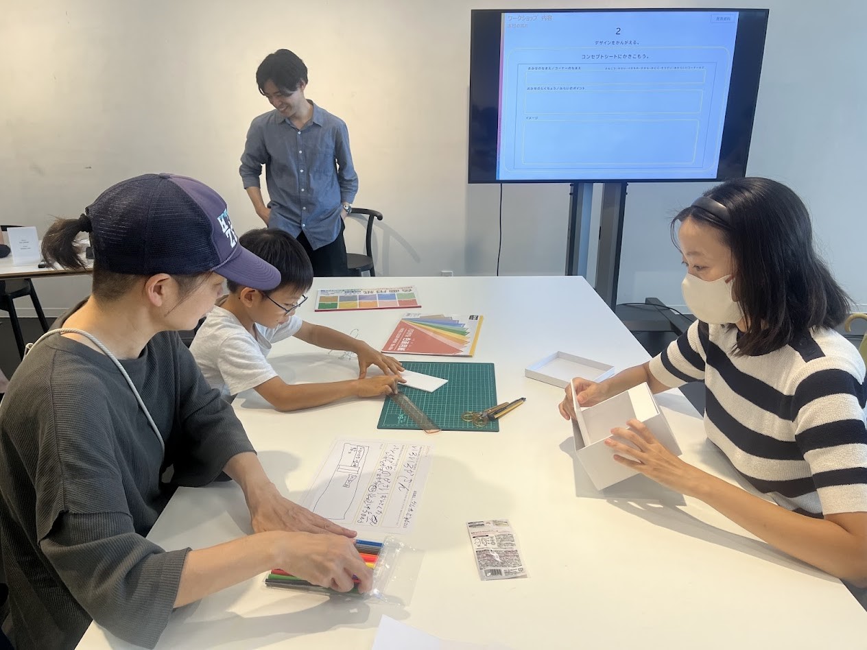 今回のお店づくりワークショップでは、子どもが好きなものをヒアリングしながら「こんなものはどうかな」と提案する形で進めていきました。私からの提案に対して、子どもからもりもりと出てくる楽しいアイデアや発想力には驚かされました。子どものアイデアを補助するように、実際に形に落とし込むための親御さんの意見を受けつつ、3人で作業を進めていきました。最後は子どもに遊び心も芽生えて、とてもいい作品ができあがったと思います。自分自身が忘れかけていた、子どもの遊び心をもってアイデアを練ることの大切さを再認識できた機会となりました。