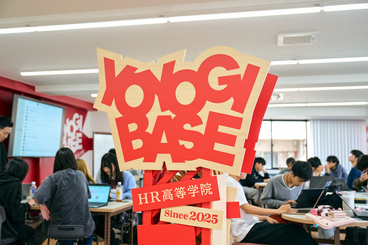 2025年春に開校した通信制高校サポート校「HR高等学院」。その学びの拠点が、東京都渋谷区代々木にある「YOYOGI BASE」です。開放感あふれるフロアには、学習に合わせて自由にレイアウトできる可動式のデスクやイスが配置され、壁のカラフルなペイントが明るくポップな雰囲気。整然とデスクが並ぶ従来の教室のイメージとは、まったく違う空間が広がっています。HR高等学院 事業本部長 恒弘 大輔さん