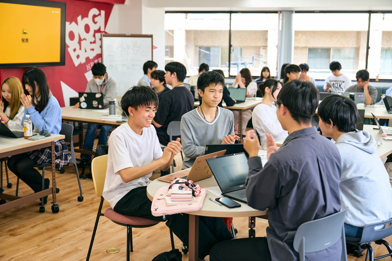 なお、HR高等学院では、学びの伴走者を「先生」ではなく「コーチ」と呼んでいます。これは先生と学生、教卓と机・椅子という配置が上下関係を生みやすいという考えから。フラットな立場で学びをサポートするというスタンスの表れです。