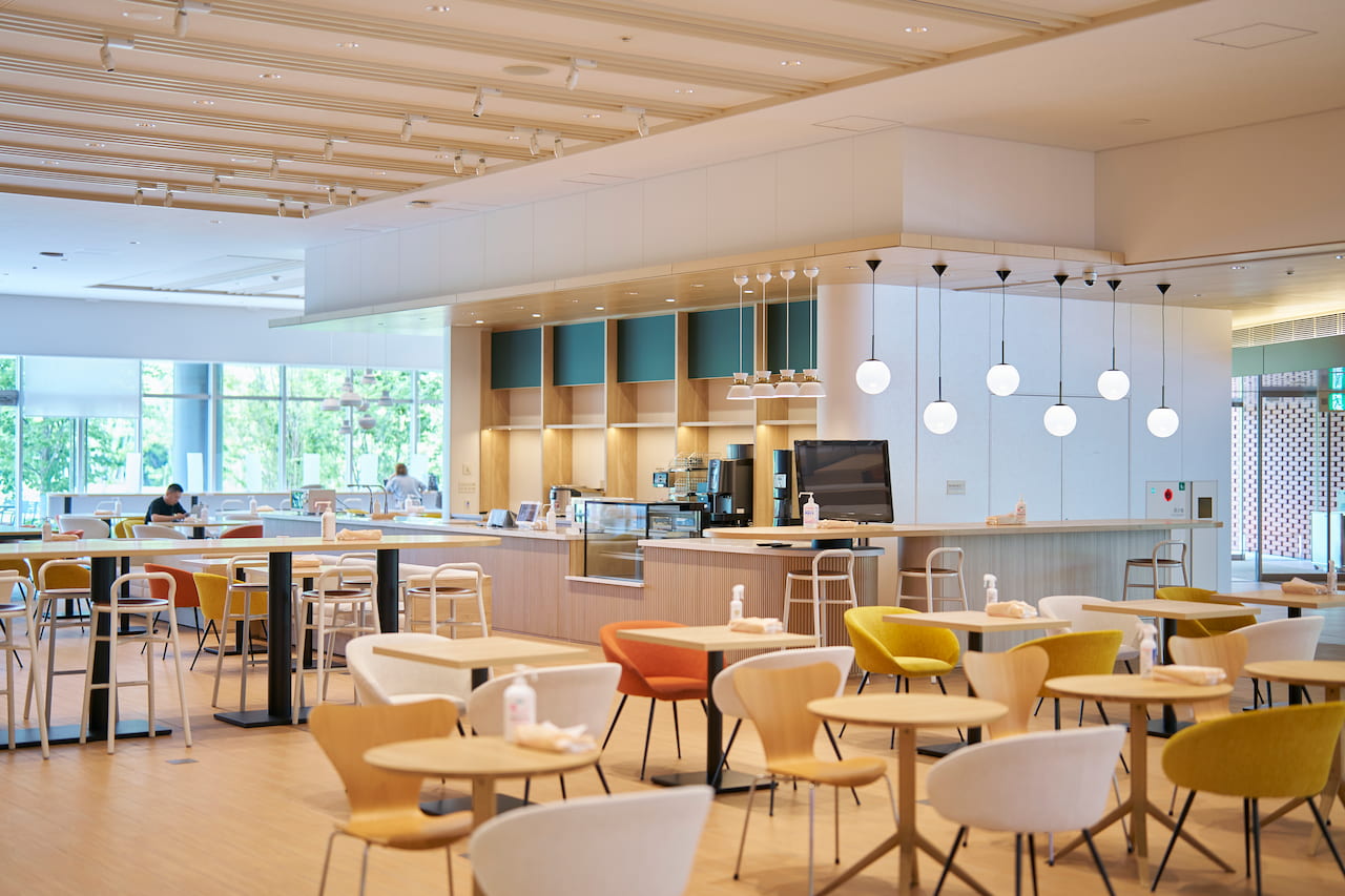 大場:好評ですよ! 本社のリニューアルは、ちょうど組織全体で「コミュニケーション」と「社員の主体性」を強めていこうとしたタイミングに重なったんです。そこで、オフィスのあり方も見直しました。この日本本社の「明田コミュニケーションパーク」は、オフィスをコミュニケーションのよい生活空間を共にする「村」のようにすることを狙っています。そのためできる限り壁や個室、仕切りのない空間をつくっています。例えば、役員室や部門毎の部屋を廃止したことで、フロアで役員や部門長同士が顔を合わせて話す機会が増えました。結果として、組織間の情報伝達や意思決定のスピードはぐっと上がったと感じています。ちょっと上司に話した内容が、5分後には「あの人にも言っておかないとな」と思っていた人に伝わっていたりする。これは意識しないとわかりづらいのですが、フロア内に壁がなく、どこに誰が座っているか見渡せるような環境というのは非常にコミュニケーションに有効ですね。ちょっとした機会にキーマンを捕まえて話をすることができる。