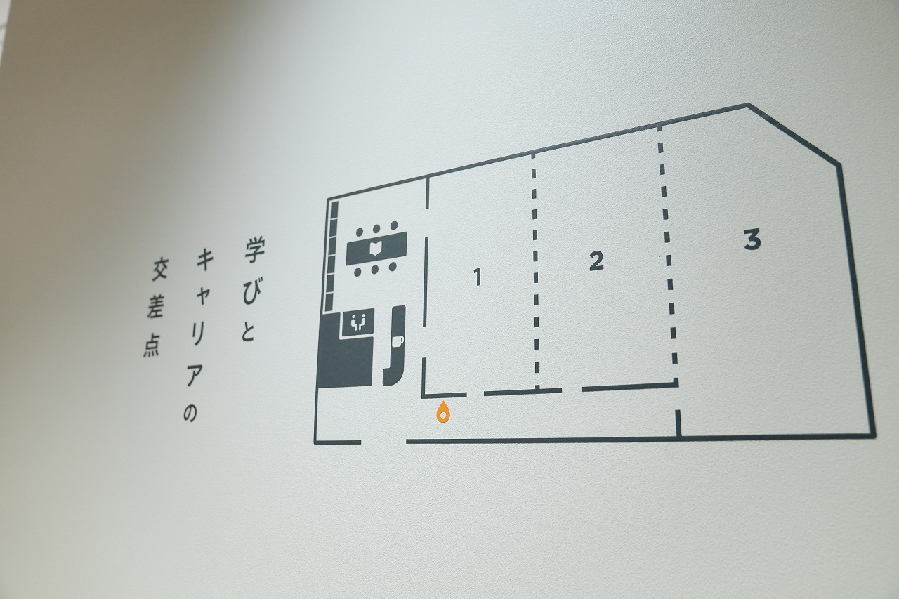 岸部:すごく考えました。まず、CROSSは「交差点」の意味ですね。実際に入ってきてわかったと思うのですが、施設のGATE、つまり入り口が交差点になっていて、直進するとカフェエリア、曲がると研修エリアというレイアウトです。そうした物理的な構造に加えて、入った時と出た時で感じ方が変わる、例えば、「学んでよかった」「この人に会えてよかった」という満足感を得られるような場所にしたいという思いを込めて、CROSSGATEと名づけました。