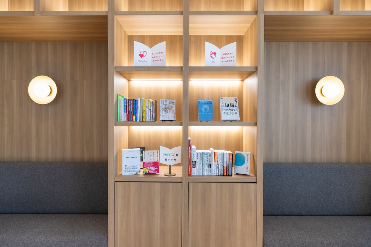 井熊:さきほどブックラウンジの本を見ましたが、ビジネス書だけでなく絵本なども置いてあって驚きました。単に学ぶだけでなく、自分の考え方が変わるきっかけになりそうな本が揃っていますね。