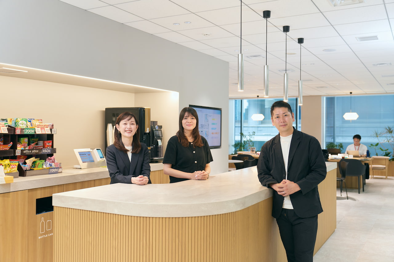 今回は、研究所の井熊 七央海が、オカムラの人財育成の現場に足を運び、実際にオカムラで、はたらき方のトレンドの「成長」がどのように実践されているのかを探ります。井熊が訪ねたのは、「CROSSGATE(クロスゲート)」。ここは「学びとキャリアの交差点」というコンセプトのもと、研修にとどまらない従業員の成長と交流を促進する場として設計されています。CROSSGATEで井熊を待っていたのは、人財開発部 部長 尾﨑 佑衣子と、人事部 人財採用課 課長 岸部 重伸。井熊が2人にオカムラの人財育成の現状と展望について聞きました。