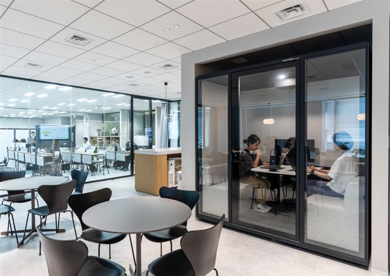 岸部:オカムラは空間を提案する会社ですから、お客様にも自信を持ってお見せできる施設である必要もありました。単に学びにフォーカスするだけでなく、オカムラがどのように空間を活用しているかを実際に体験していただけるショーケースとしての役割も持たせたいと考えたんです。