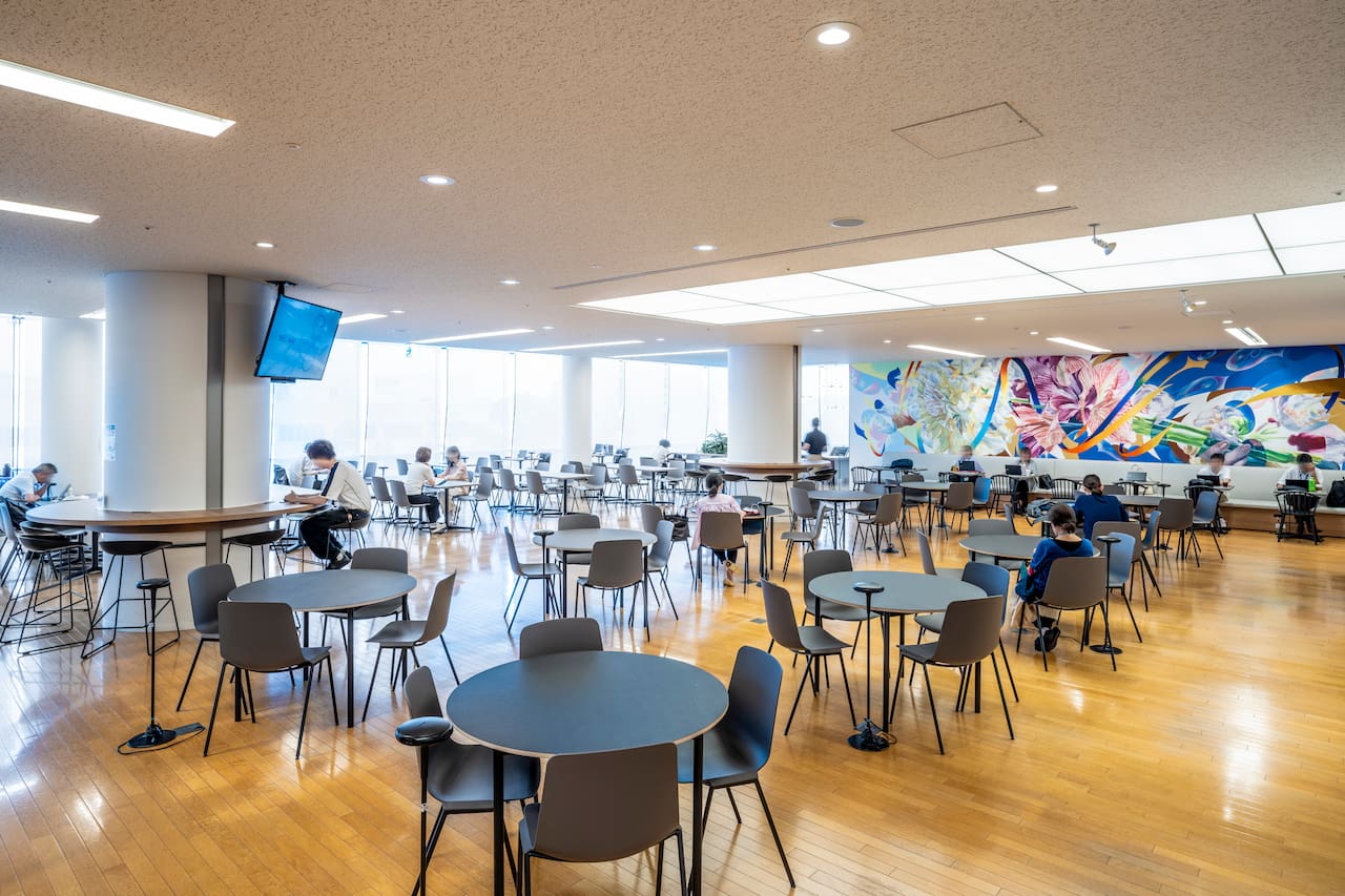 庵原:私が携わったオカムラの事例の一つが、NEC(日本電気)の玉川事業場食堂改装プロジェクトです。食堂を共創空間として再定義しました。構築プロセスでNEC従業員参加型のウォールアートプロジェクトを実施し、共創意識を醸成しています。このプロジェクトは、空間づくりだけでなく「共創というはたらき方」を組織に根付かせるのが目的でした。