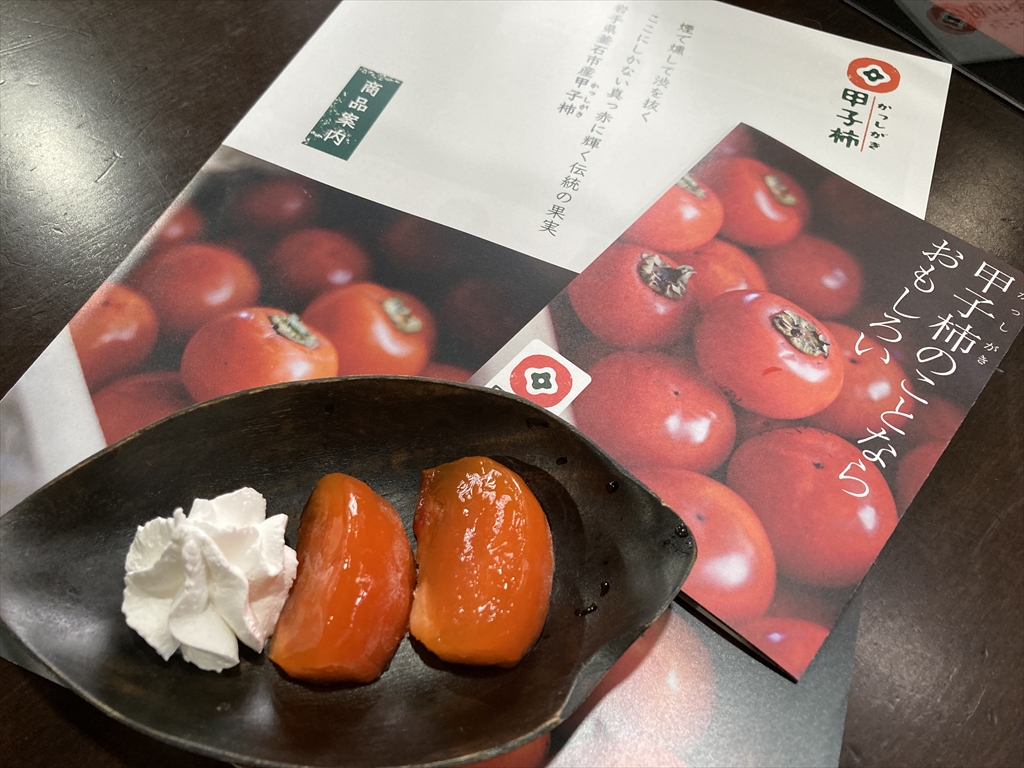食後には、熟れが早いため市場に出回らないという、まるでゼリーのような食感の「甲子柿」もいただきました!