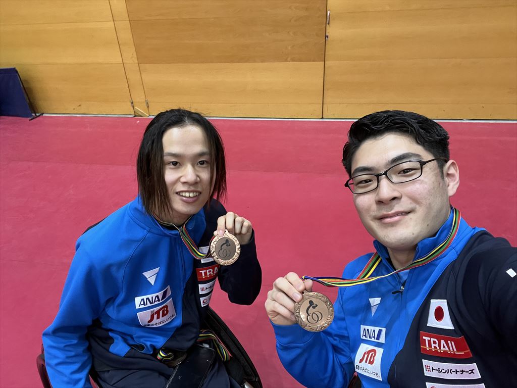 ダブルスでは私のクラスが確定した後に同じクラス4の齊藤元希選手と組ませていただくことになりました。ほぼ練習をしていない状態で試合に臨みましたが、齊藤選手の安定感のおかげで、強豪ペアにも勝利。3位入賞することができました。これから更にコンビネーションを上げていきたいと思います。