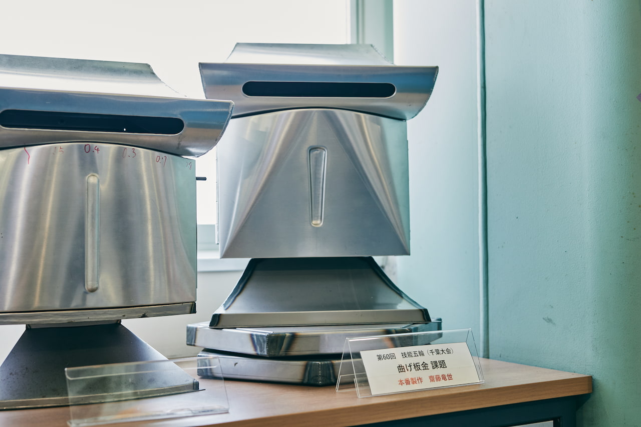 齋藤:2020年4月に入社、6月に開催される神奈川県の予選会に向けて、「曲げ板金」の基礎を学びました。具体的には、鉄板を触るところからはじまり、切ったり曲げたりする加工や、立体にするための計算などです。予選会は合格して、11月の全国大会に初出場しました。