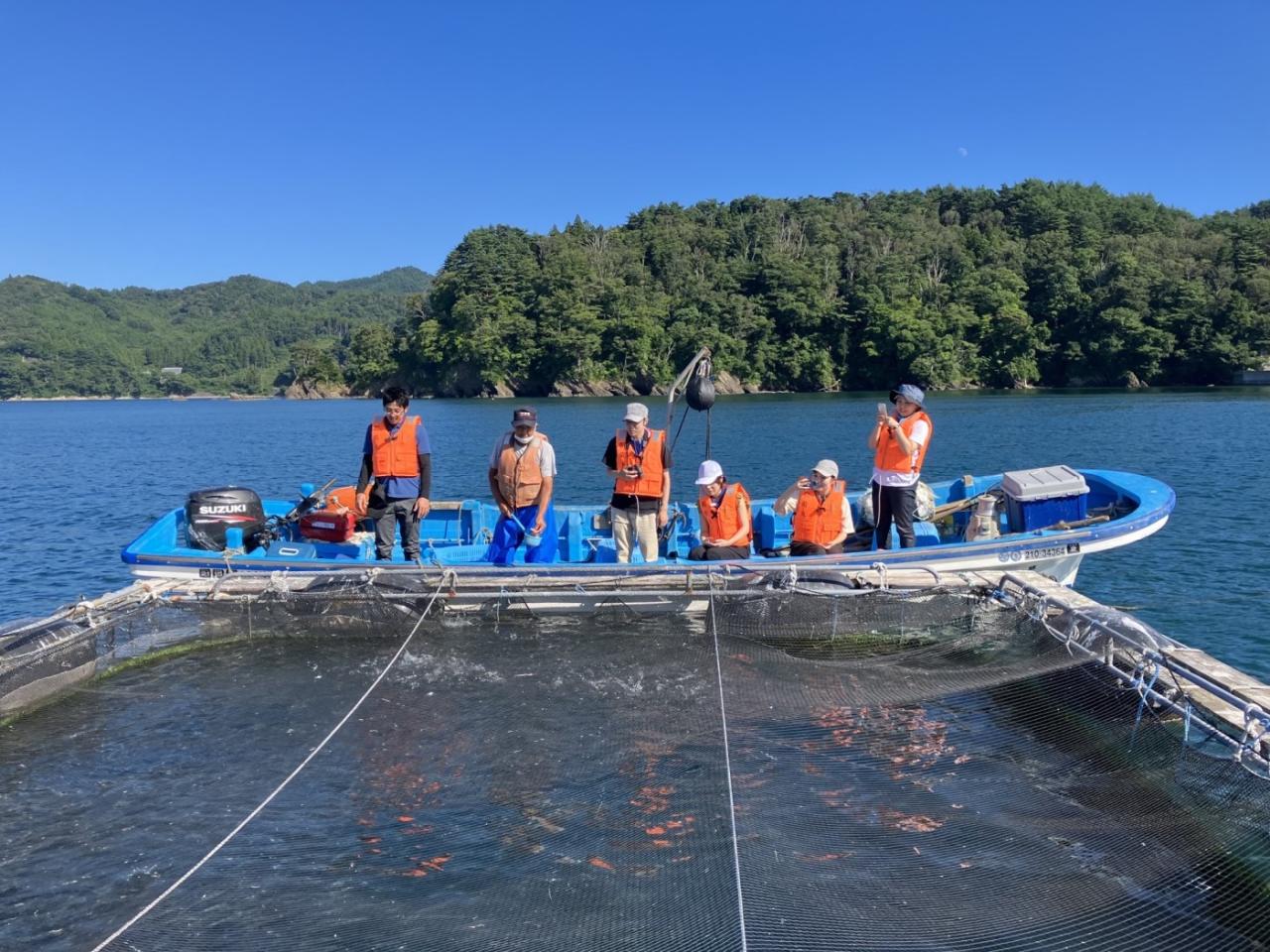 オカムラで今夏実施した「サステナビリティ研修 in 釜石・エヌエスオカムラ」では、一部でかまいしDMC提供の研修プログラムを取り入れました。震災伝承と防災について学ぶ「いのちをつなぐ未来館」訪問や2019年ラグビーワールドカップの試合も行われた「釡石鵜住居(うのすまい)復興スタジアム」を見学、地元漁師の方の案内で漁船に乗る漁業体験など多様なプログラムを通じて震災の記憶と復興を知り、釜石の自然も体感しました。